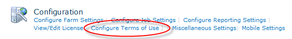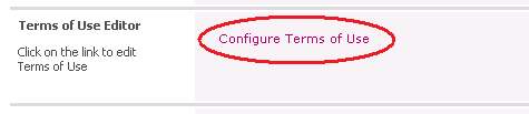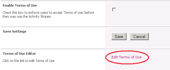 - From the Social Platform Management page, click Configure Terms of Use. The Terms of Use configuration page appears.