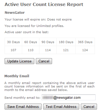 If you are no longer in compliance, contact NewsGator for a new license key. You can update your license key after install without running the installer by clicking the Update License button on this page.