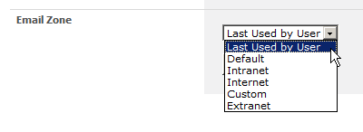 The Email Zone section allows you to set what Alternate Access Mapping (AAM) zone is used in the URLs of links that are shown digest and notification emails. If your organization does not use AAM, you can leave this on one of the first two options, Last Used by User or Default.