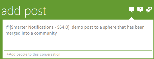 If a user manually target the sphere by typing in the full @ name, the post is automatically sent to the community as shown below.