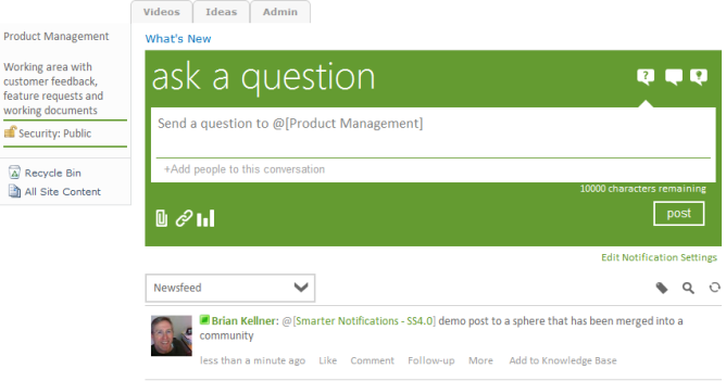 The sphere name typed in by the user still displays in the stream item to give context. Clicking on the sphere name when it is linked will now bring users to the community.