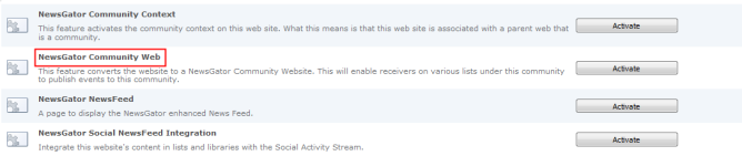 - Activate the NewsGator Community Web feature.