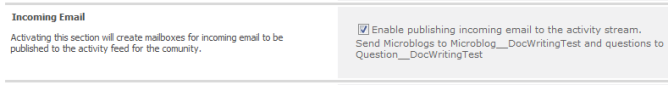 In addition to global emails (see Global Email Addresses for microblogging and asking questions), individual community owners can enable inbound microblog and question addresses for their specific community.
