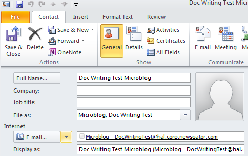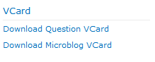 The community admin can make these addresses easily available to users by adding the Vcard web part to the community site. This part presents the addresses for the community.