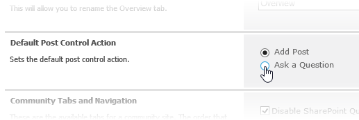Having done this, the community’s post control should now look like this, with the question option on the left: