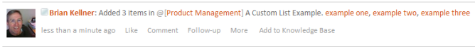 Once the publish social activities setting is on, activity stream items are created for new entries in the list. These events have the normal consolidation behavior for new list events in a community, so they may not appear in the stream for 30 seconds.