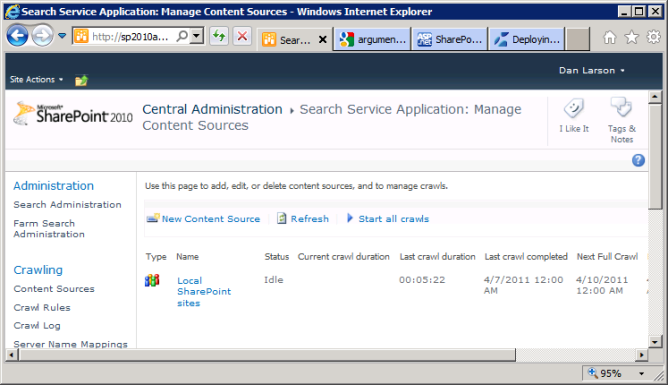 - After setting up the Search Crawl source, do a full crawl.