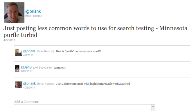 Aurea Social provides you with the capability to have SharePoint index public microblogs and questions and the comments and answers on them. Users searching through SharePoint (or FAST) search sees these items inline with other search results.