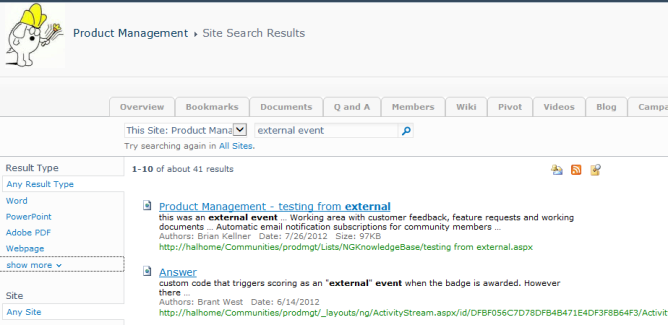 This search integration also includes the community level: