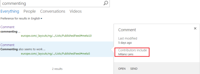 In 2013, the search refiners on the left now include “Newsfeed post” as one of the out-of-box options.