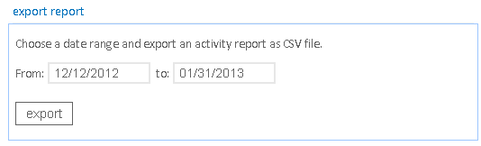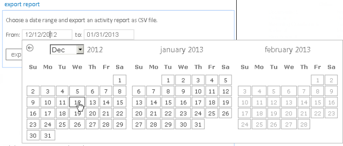 - Click in the from or to boxes to open a date selector control. In the From box enter the beginning date, and in the To box enter the ending date, for the activities you’d like in the report.