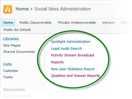 Click Social Sites Administration. This brings you to the Aurea Social Administration page.