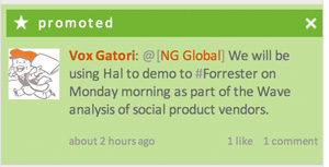 Promoted posts appears with a green background and has a “Promoted” banner at the top of the stream item.