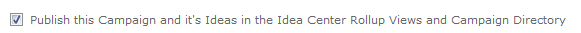 Also note that campaigns which are part of a community can also be published to be visible in the global page. Clicking the publish checkbox is not required to make community campaigns visible on the community rollup page.
