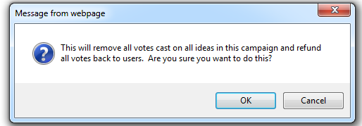 - Click OK. Users get their pools of votes back (in marketplace mode) and all ideas are reset to zero votes.