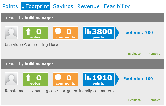• 1000 points for carbon footprint reduction: 100 tons carbon foot print saving times a weight of 10