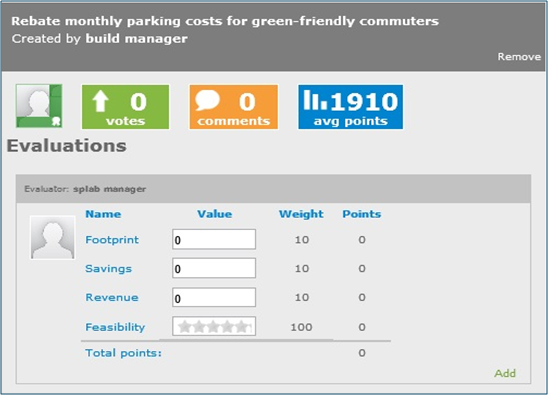 An expert that has not yet evaluated an Idea will only see the overall averages for the individual criteria(s) and the total points for the Idea.