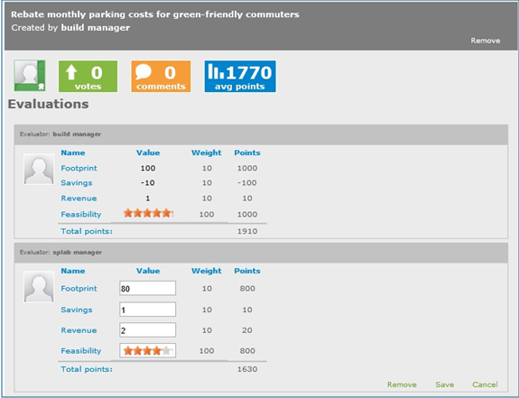 In the 4.5.2 version, we introduced the ability for one or more experts to evaluate each Idea in the Related Ideas list. If more than one expert evaluates an Idea, the total points for the individual criteria as well as the total overall points for the Idea is averaged by the total number of evaluations.