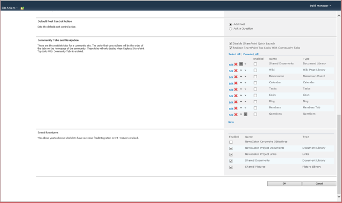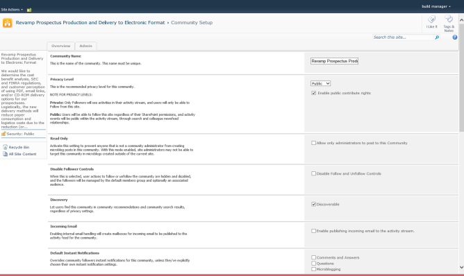 This is what the community itself looks like after clicking on Ok (other Aurea Social features can be enabled like Video Stream and Enrich to help manage the project).