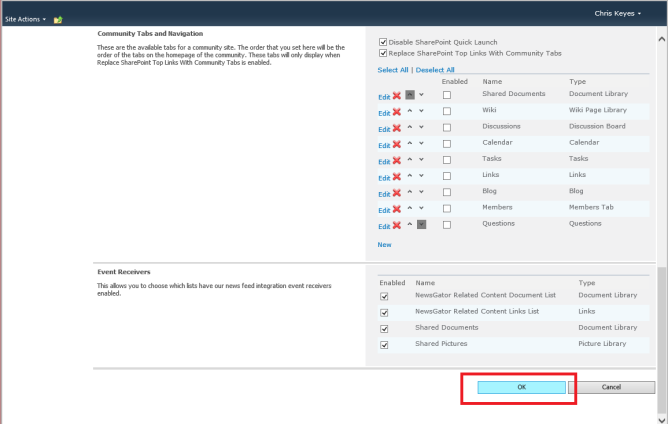 To get to the community administration is similar to a regular community, that is, Site Actions > Site Settings > Community Site Management – Community Administation. See the administration page in the two images below: