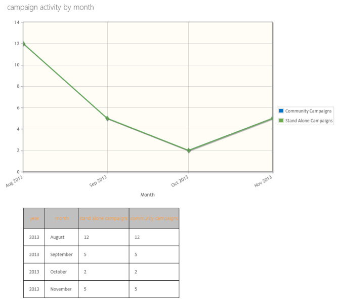 - Campaign activity by Month: New campaigns created by month by type of campaign