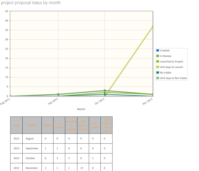 - Project Proposals by Month: New project proposals created by month, project proposals by state with AVG time-to-state for project proposals created that month