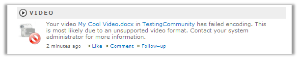 Attempting to encode the file through the Expression Encoder client may furnish for information. Failing that, the NewsGator Support team can help you with any error you encounter.