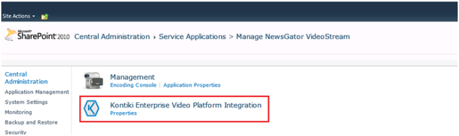 For the administrator, the Kontiki integration capability deploys as a SharePoint feature.