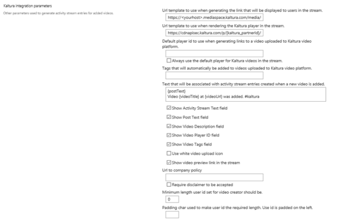 Kaltura integration parameters