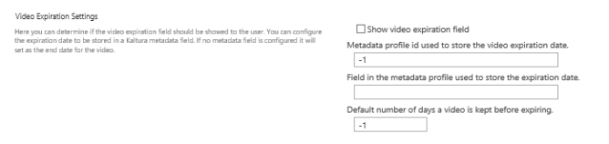 - If you leave it at -1 we use the default Kaltura expiration mechanism