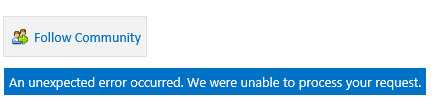 - Follow Community: When clicked, you see an error message “An unexpected error occurred. We were unable to process your request.” Following status isn’t changed.