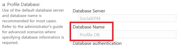 The name of the Profile Database is outlined in red