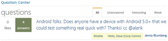 First introduced in the 5.1 release, this web part aggregates questions from around the system to make them more easily discoverable.