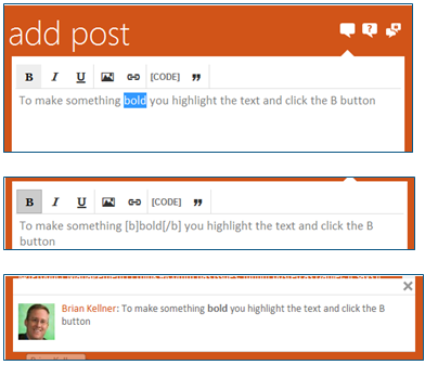 In the 5.0 release, Aurea Social introduced an easier and more discoverable way to format posts with the optional BBCode post editor.
