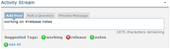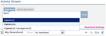 Using the hashtag (#) symbol allows you to indicate a keyword such as #products. The “#” and keyword together are referred to as a “hashtag”. Users can then filter the activity stream on a particular hashtag.