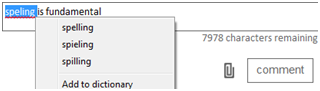 If your browser supports spellcheck, posts and comments you type will show potential spelling issues. In Internet Explorer, you can right- click on the underlined text to get options.