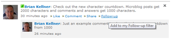 The Follow-up control lets you mark items in the stream to be able to go back to them more easily later.