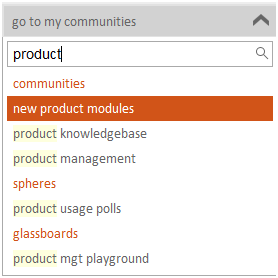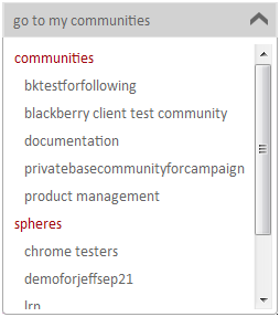The pull-down control at the top of the screen provides quick navigation to the user’s communities, spheres and glassboards (if these are being used).