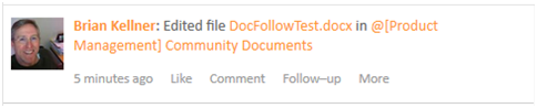 SharePoint 2013 implemented a “follow a document” behavior that creates events which Aurea Social can display in the activity stream.