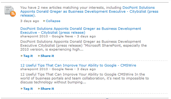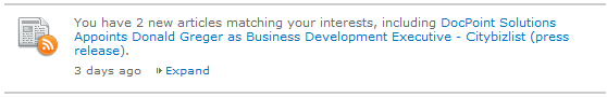 It is possible, as in the example below, that multiple new articles match the user’s interests. In this case, the event lists the title of one of the articles