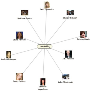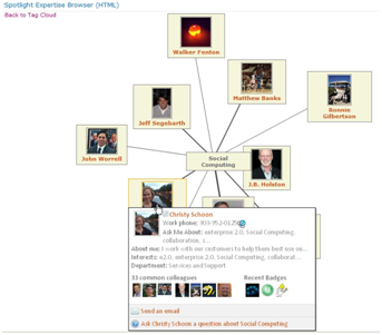 Three web parts provide users the ability to search for users based on their areas of expertise, or to discover what a particular user’s interests or areas of expertise are.