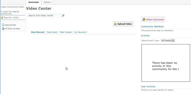 - The first use case is the video center or “internal YouTube ©” scenario where a video-specific community is created to support a centralized location for the uploading, discovery and viewing of videos. This is ideal for sharing videos with an audience that spans many communities like a video learning site.