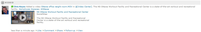 Below is what an up-loaded video will look like in the Activity Stream in the community: