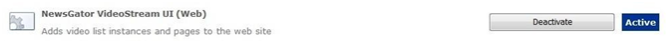 When the Video Stream module is installed on the SharePoint farm, community administrators can activate the NewsGator Video Stream site feature in Site Settings: Site Features.