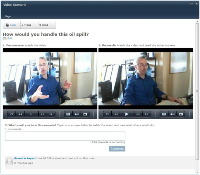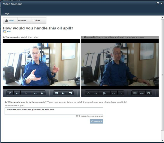 Once the comment has been posted, the user can watch the scenario result video and see their own comment posted. If others had taken the video scenario already, those comments would also be displayed.