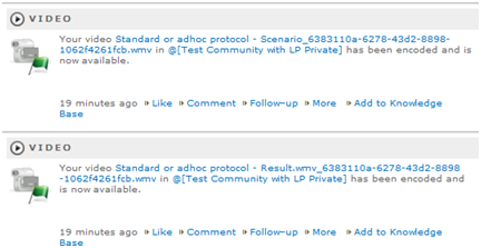 - The contributor receives notices in their newsfeed that videos are pending encoding as well as similar notices once they are encoded in the example below.