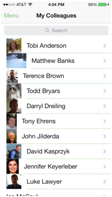 The Colleagues screen shows everyone that you follow in Aurea Social.