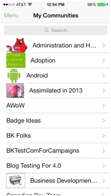 The communities screen includes all communities and spheres that you follow.