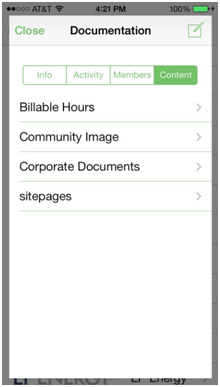From the Colleagues and Communities detail screens, as well as your own Profile, you can see a tab that displays Content.
