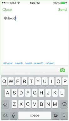 The Aurea Social app makes it simple to target communities and people, as well as add hashtags with the tap of a button. When you click ‘@’ or ‘#’ you start to see suggestions for the intended word, person, or community.